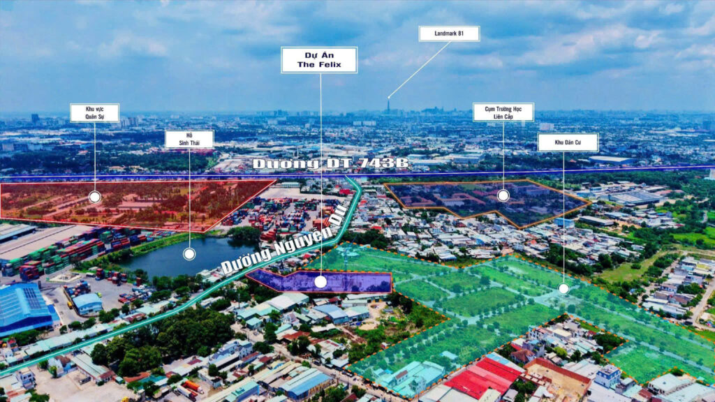 Dự án The Felix tọa lạc ngay mặt tiền đường Nguyễn Du, thuộc phường Bình Hòa, thành Phố Hồ Chí Minh. Đây là vị trí tiếp giáp với quận Thủ Đức và cả Dĩ An.